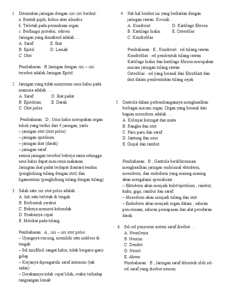 Kumpulan Soal Pembahasan Jaringan Hewan