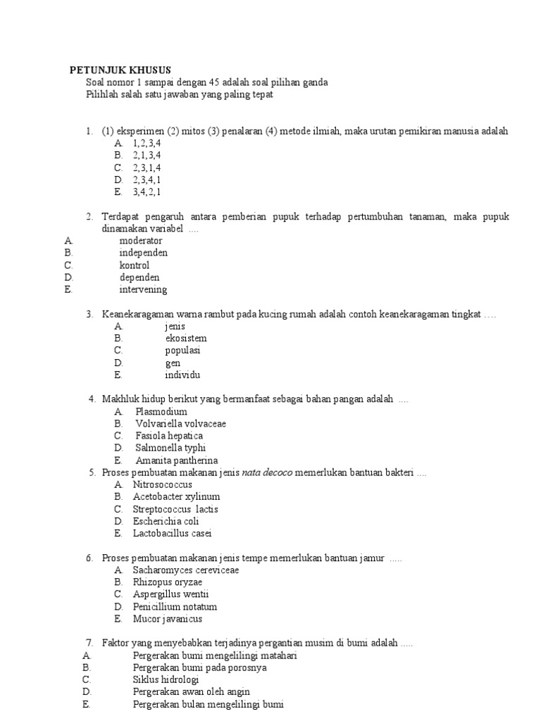 Soal Pilihan Ganda Ipa Dan Jawabannya Guru Galeri