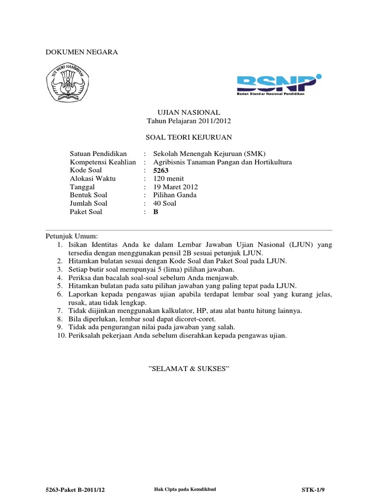 Latihan Soal Ujian Teori Kejuruan SMK Agribisnis Tanaman Pangan dan Holtikultura Tahun 20172018 ini merupakan soal terbaru yang mungkin anda perlukan. SOAL UN Agribisnis Tanaman Pangan dan Hortikultura SMK Pertanian Kelas XII February 17 2015 Soal SMK Produktif 12 comments Pilihlah jawaban yang paling tepat dengan memberi tanda silang X dilembar jawaban. Seperti halnya waktu - waktu ini untuk menyambut kedatang USBN tahun anutan 20182019 pada kesempatan kali ini admin akan menawarkan latihan soal USBN Prakarya dan kewirausahaan Sekolah Menengan Atas terbaru 2019 dan Kunci Jawaban.