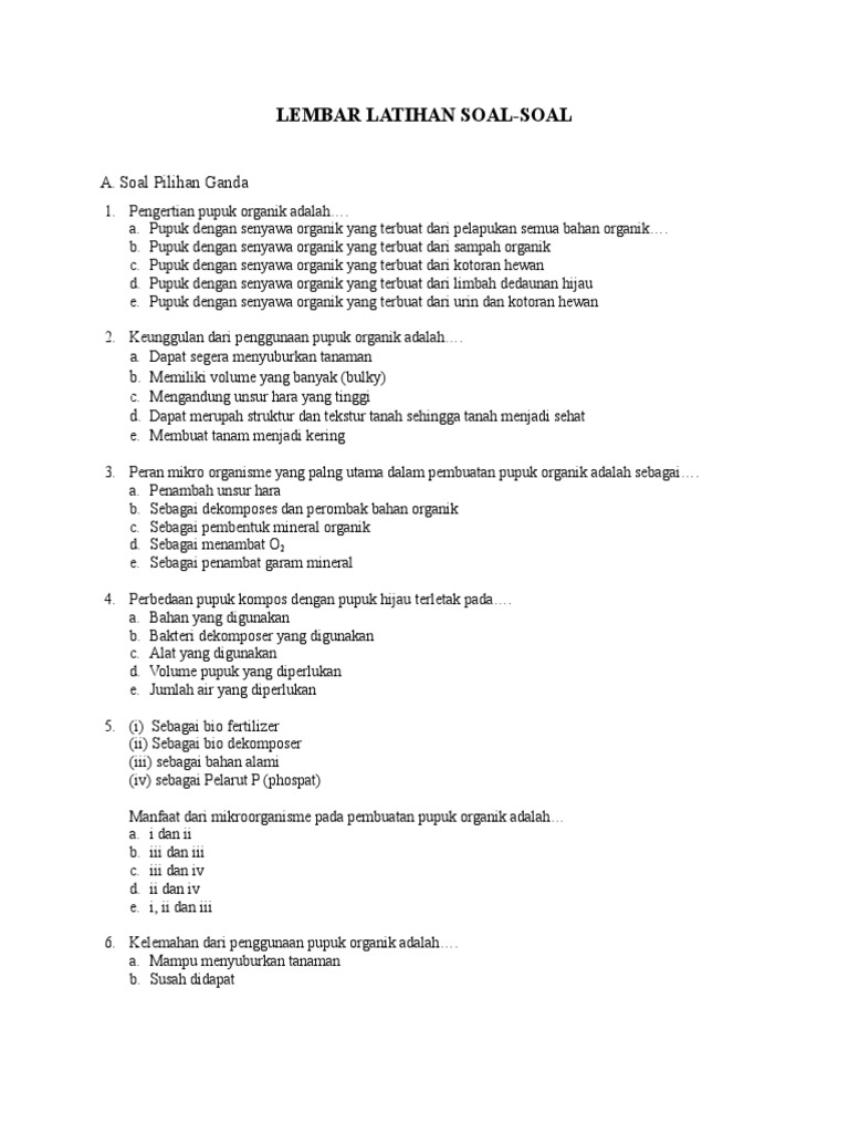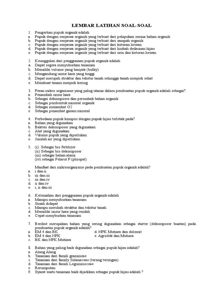 Soal Dan Jawaban Tentang Pupuk Organik Ilmusosial Id