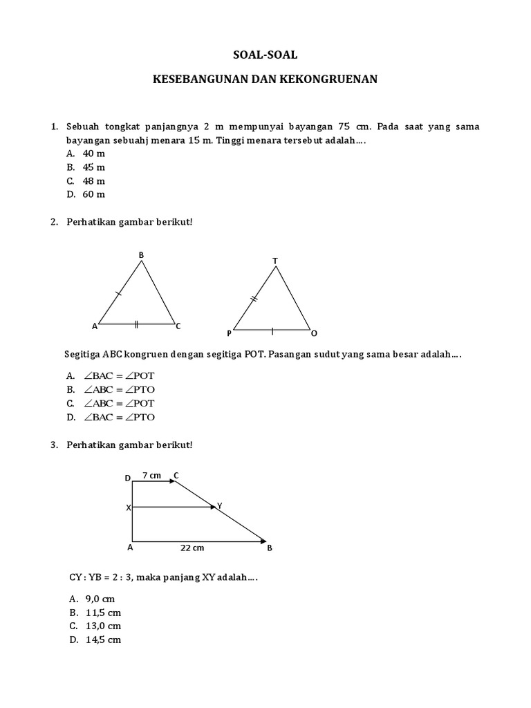 Soal Soal Kesebangunan Dan Kekongruenan