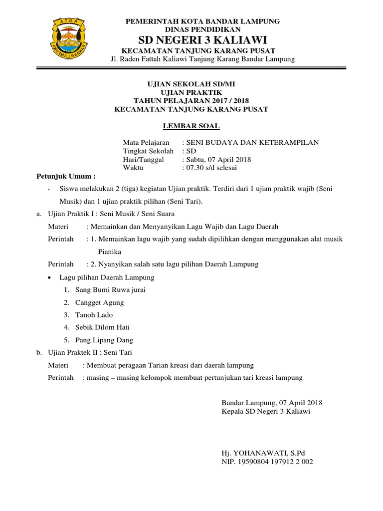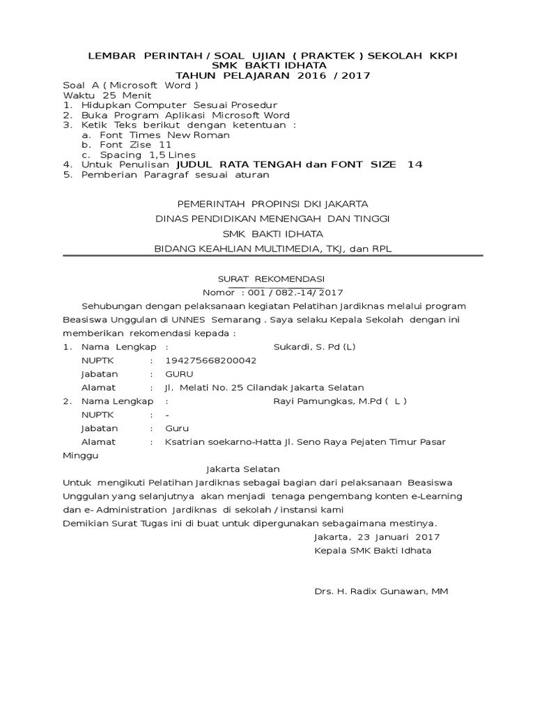 Contoh Lembaran Soal Ujian Praktek Ukk Himpunan Soal